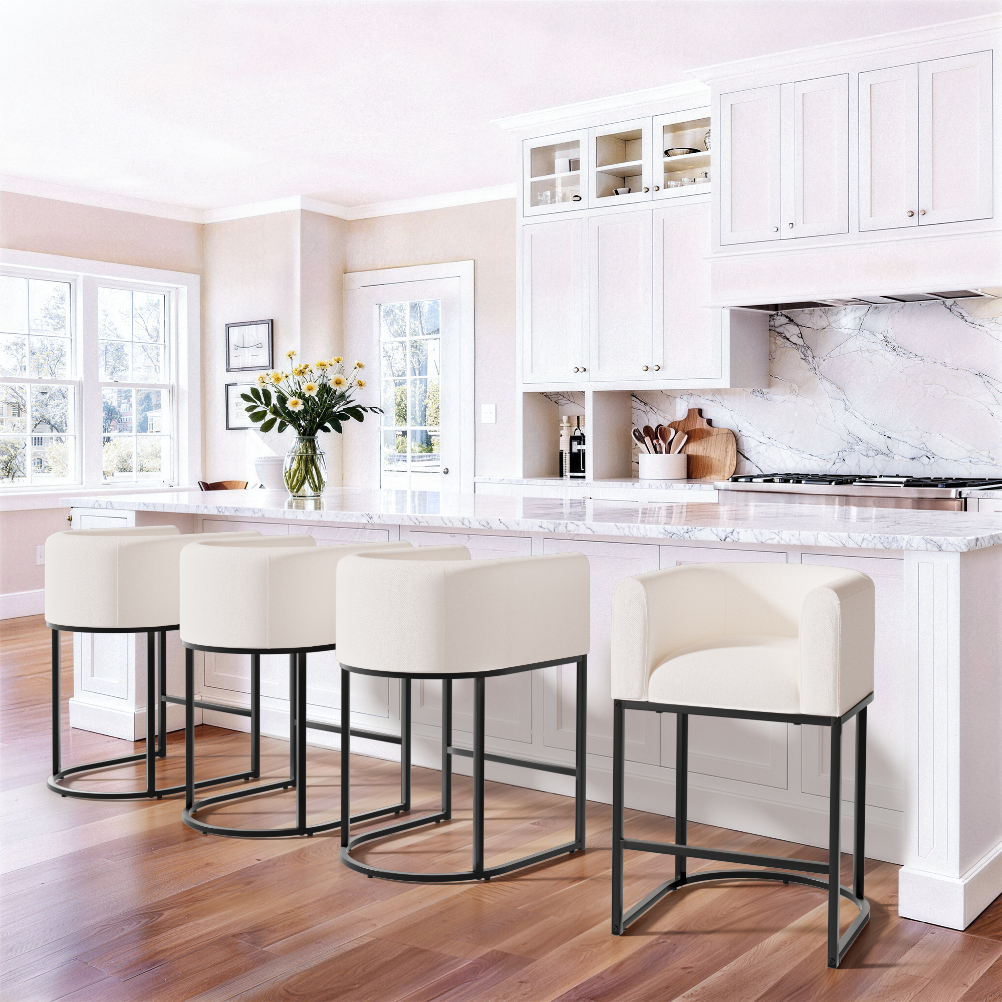 ZORRTIK Bar Stools Set of 3-27" Barrel Shaped Counter Height Bar Stools with Backrest & Arms, Modern Bar Chairs, 6.2" Extra-Thick Cushion, Elegant Counter Stools for Kitchen Island, Beige